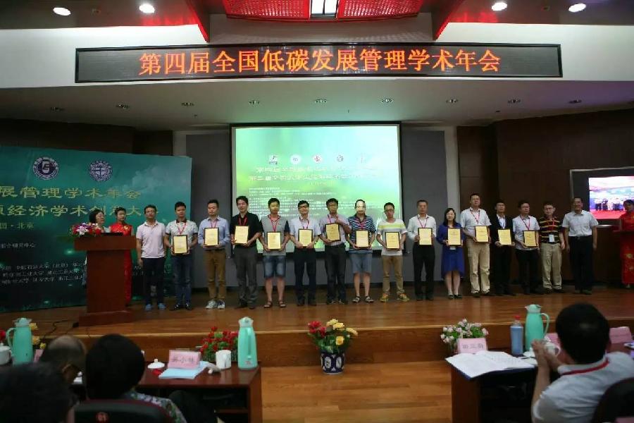 在随后进行的第四届全国低碳发展管理学术年会上,举行了盛大的颁奖典礼大赛组委会主任范英教授宣布了大赛成绩。中国·必威(西汉姆联)官方网站-betwayspo的李卫团队和中国科学技术大学的马嫣然团队摘得桂冠,获得“第二届全国老员工能源经济学术创意大赛特等奖”。中国优选法统筹法和经济数学研究会理事长池宏教授、中国石油大学(北京)副董事长吴小林教授等出席颁奖典礼,并颁发了特等奖、一等奖、二等奖和优秀组织奖,感谢各高校积极高效的组织工作,并祝愿和鼓励大家在能源经济学术创意大赛的带动下做好工作,为我国的节能减排事业和生态文明发展做出贡献。